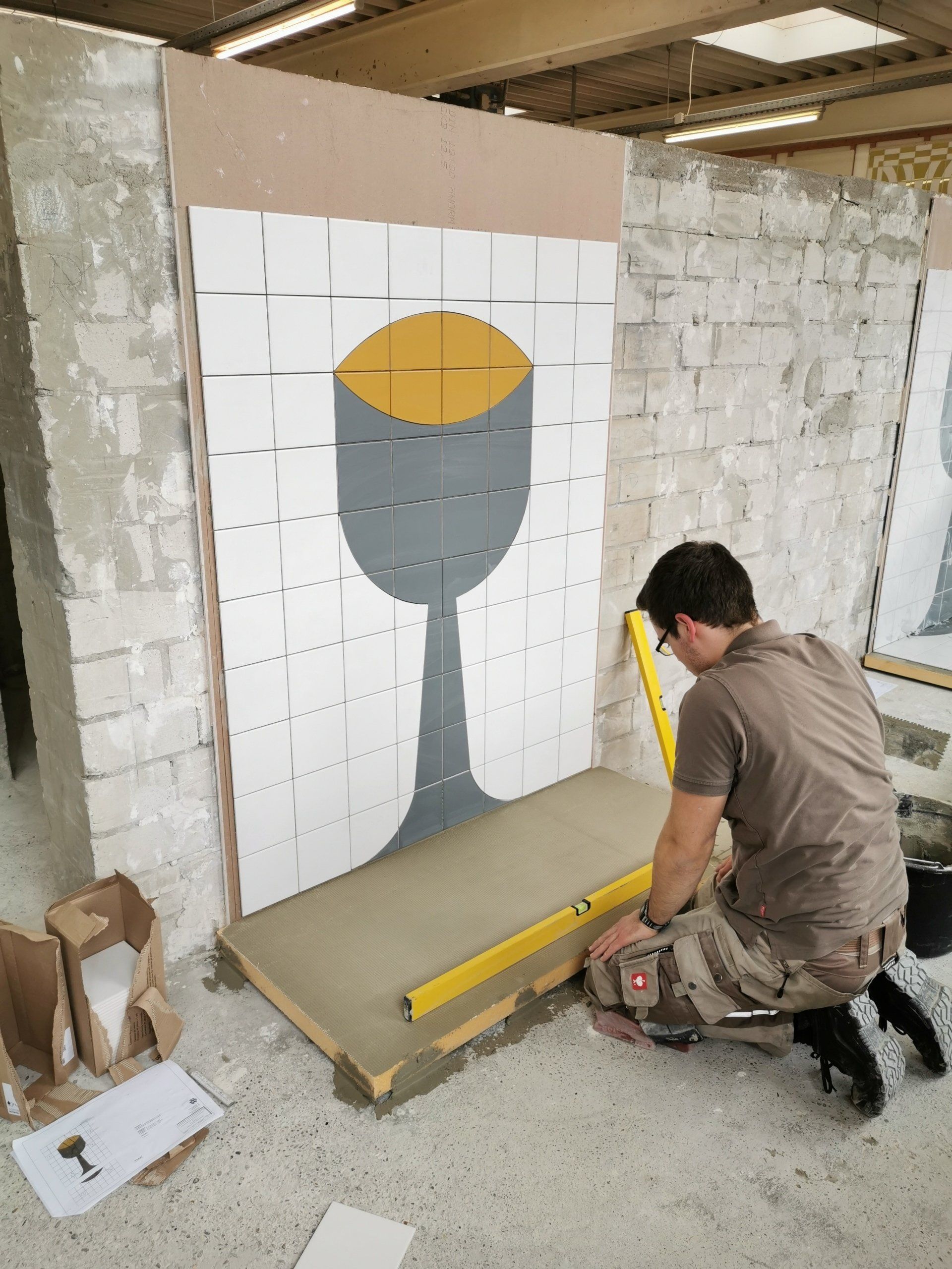 Durch den Abschluss der Ausbildung zum Fliesen-, Platten- und Mosaikleger als 1.Kammersieger (Beste Gesellenprüfung als Fliesen-, Platten- und Mosaikleger in der Handwerkskammer Düsseldorf 2019), hat sich Sascha zu der Teilnahme an dem Leistungswettbewerb auf Landesebene qualifiziert.